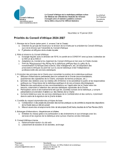 Le Conseil d'éthique a fixé des priorités pour la période 2024 - 2027
