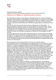 • Förderung der öffentlichen Statistik auf regionaler Ebene, namentlich auf kantonaler und städtischer Ebene